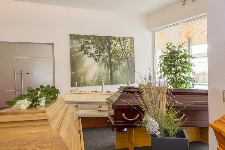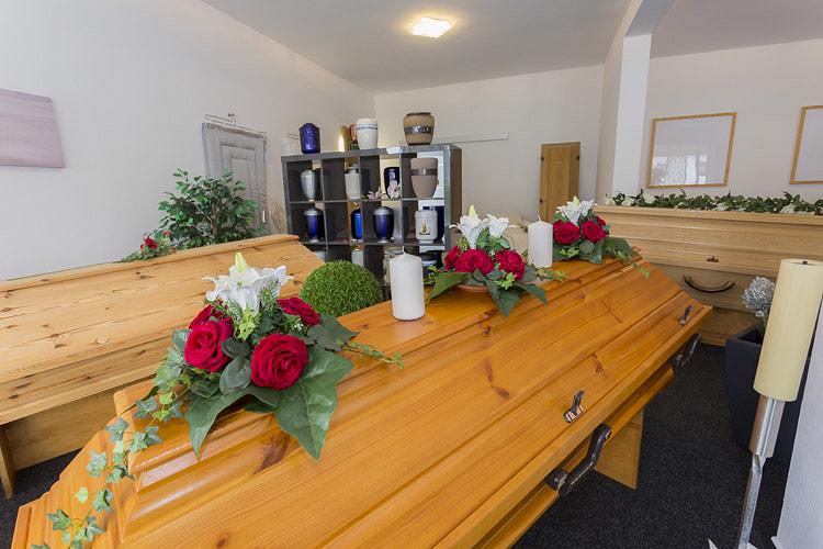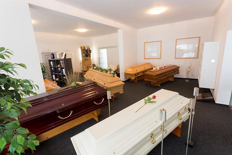 Sargausstellung Wir haben für jeden den passenden Sarg, ob modern oder klassisch, ob für eine Erd- oder Feuerbestattung – unser Haus bietet Ihnen eine große Auswahl an über 60 Särgen an.