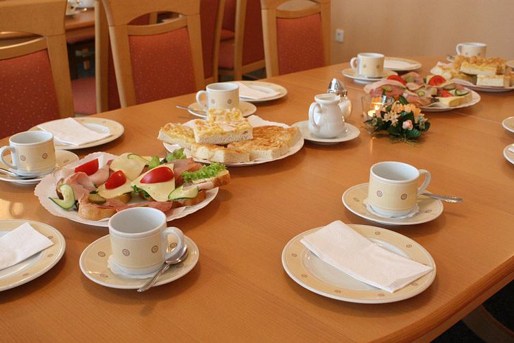 Die Nutzung des Café-Raumes ist kostenlos und kann eine Kaffeetafel mit bis zu 120 Personen Platz bieten.