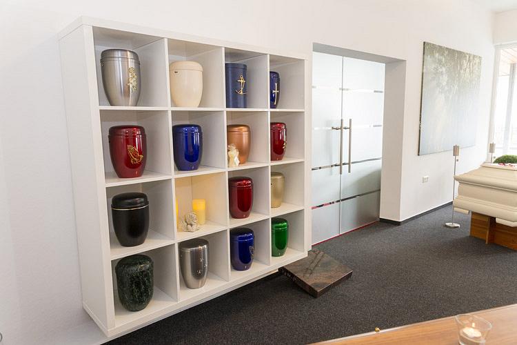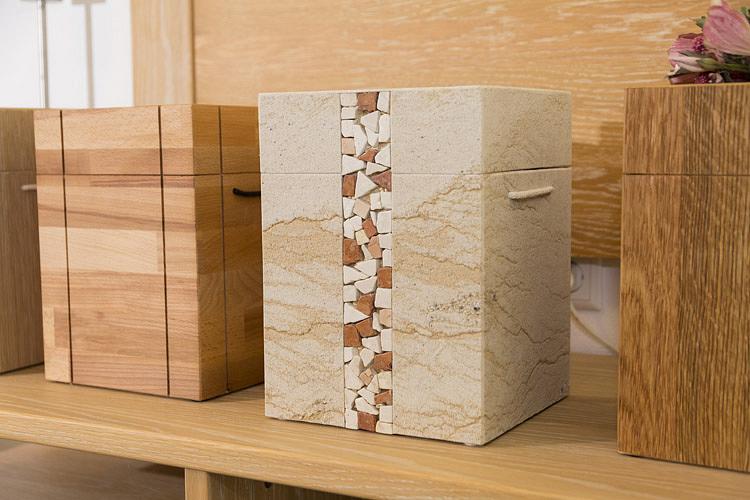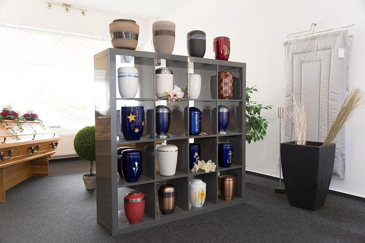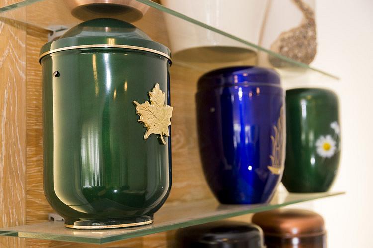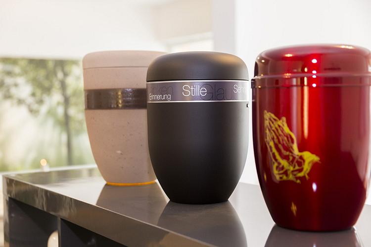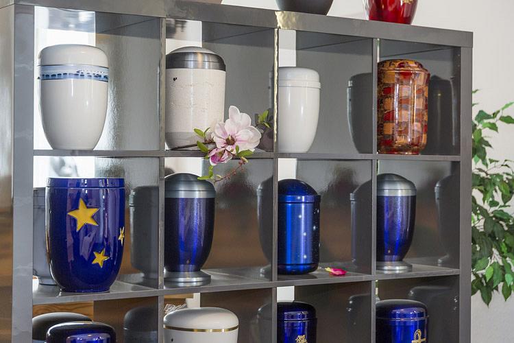 Urnenausstellung Urnen gibt es aus verschiedenen Materialien, Formen, Farben und Preisklassen.
